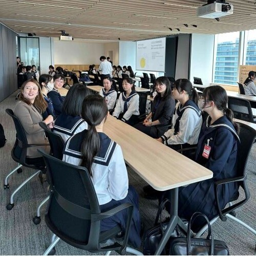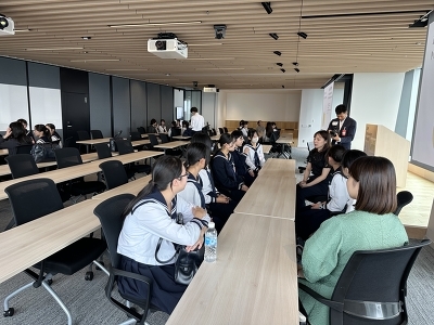 4グループに分かれ、女性ボランティア社員の皆様の普段のお仕事やこれまでのご経歴などいろいろなお話を聞かせていただきました。中には大学で文系であったことや高校時代にしておいたほうがいいことまでうかがい、「様々な分野・職種への視野が広がった」、「大学選びだけでなく、その先の進路も考えられる機会になった」との感想がありました。
