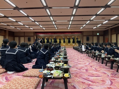 この日は、鬼怒川の温泉旅館に泊まり、夕食時には演芸会を開催しました。ホームごとに趣向を凝らしたパフォーマンスを披露し、教頭先生と添乗員さんの投票により、野村ホームが優勝しました。