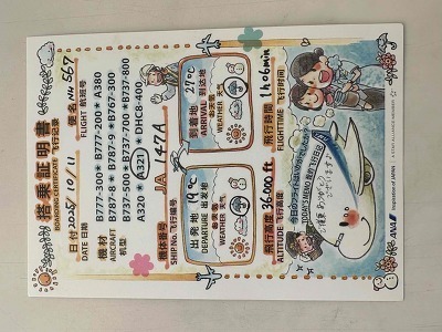 [ANAのクルーさん達からいただいたカード(表)]